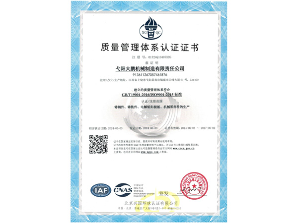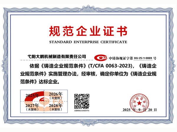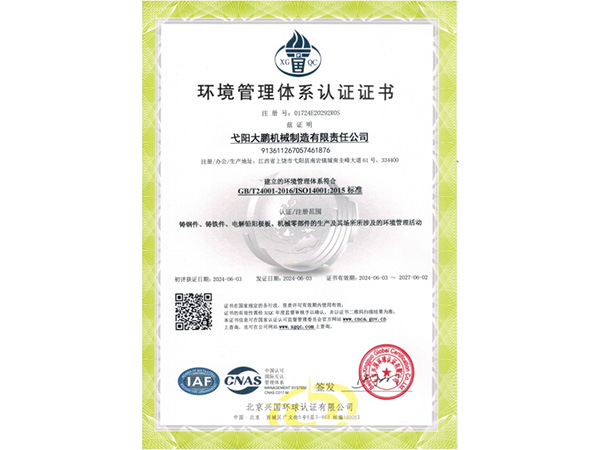 公司順利通過質(zhì)量管理體系認(rèn)證、環(huán)境體系認(rèn)證、職業(yè)健康安全管理體系認(rèn)證、環(huán)評(píng)。2015年5月獲國家工信委頒發(fā)的《鑄造企業(yè)準(zhǔn)入條件》;2019年做了安全現(xiàn)狀評(píng)價(jià);2020年取得了排污許可證。
